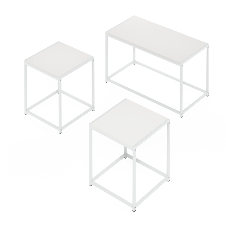 • Furinno Camnus Modern Living Room Table Set with One Coffee Table and Two End Tables, Solid White/White image - 1