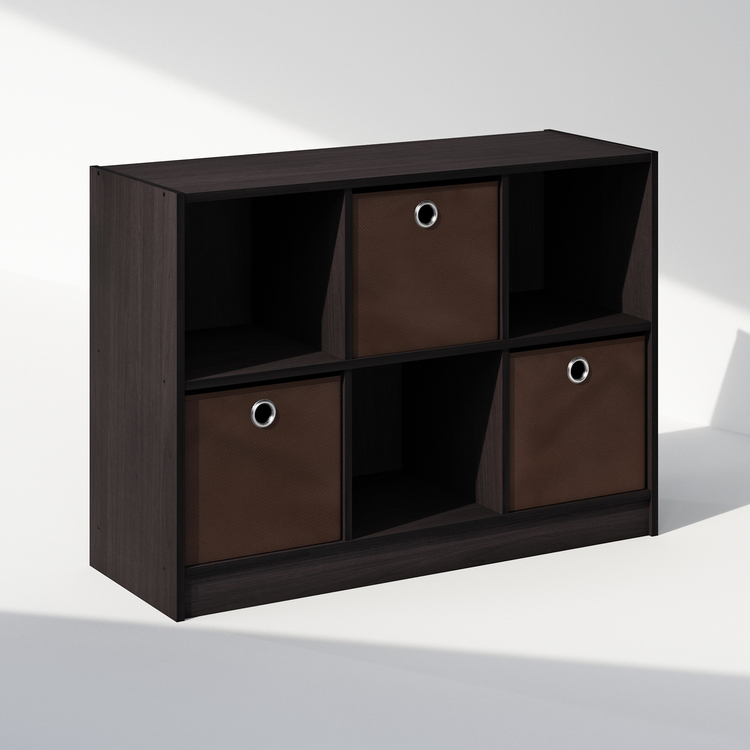 • Furinno Cubic Multipurpose Clothing & Closet Storage Organizer Shelf with Bin Drawers, 6-Cube, Dark Walnut image - 1