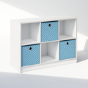 • Furinno Cubic Multipurpose Clothing & Closet Storage Organizer Shelf with Bin Drawers, 6-Cube, White/Light Blue image - 1