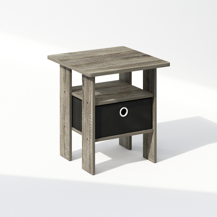 • Furinno Tidur Bedside Table Nightstand with Bin Drawer, French Oak/Black image - 1