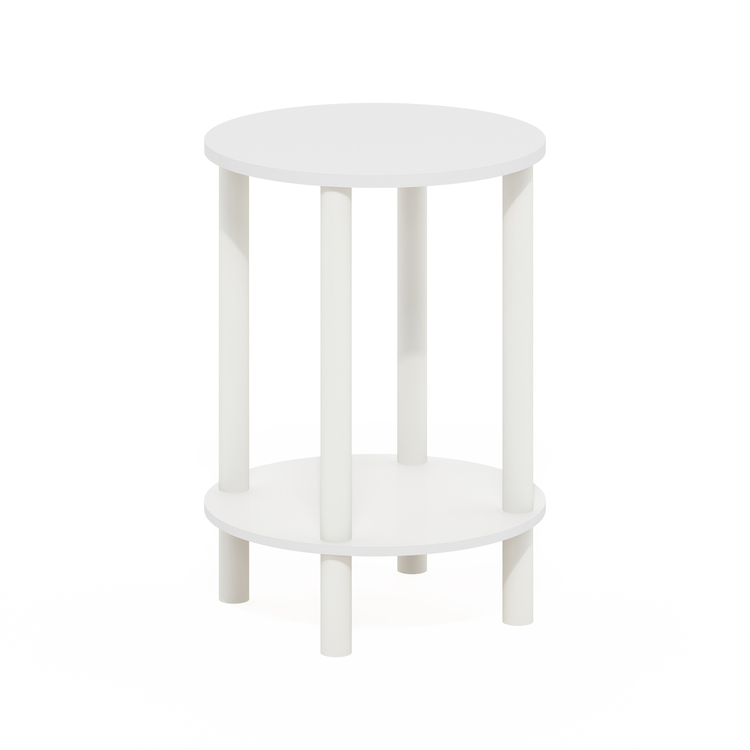• Furinno Turn-N-Tube 2-Tier Round Wooden End Table, Side Table, White/White image - 1