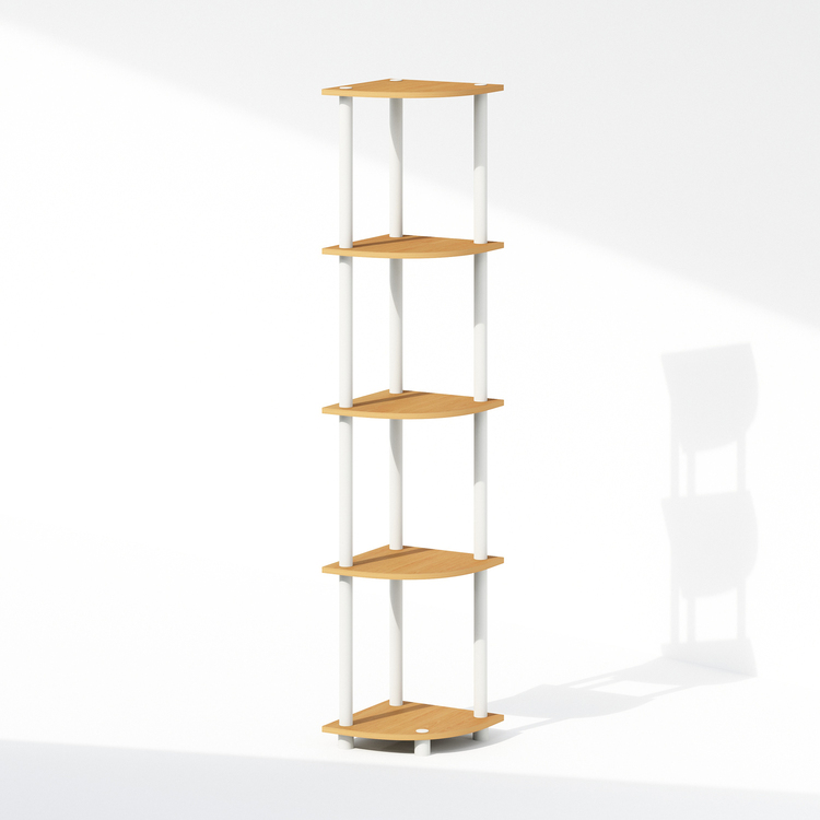 • Furinno Turn-N-Tube 5 Tier Multipurpose Corner Display Rack Shelving Unit, Beech/White image - 1