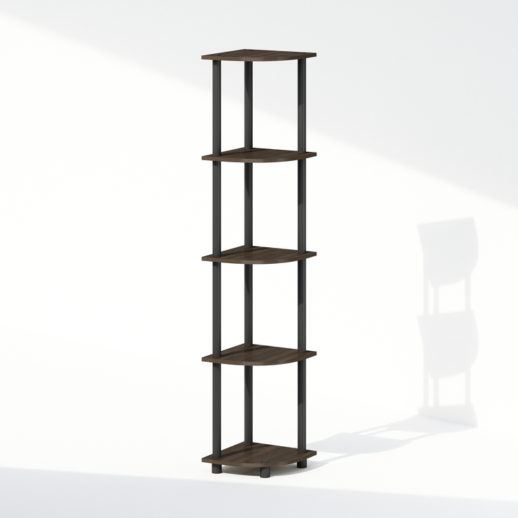 Furinno Turn-N-Tube 5 Tier Multipurpose Corner Display Rack Shelving Unit, Dark Brown Grain/Black