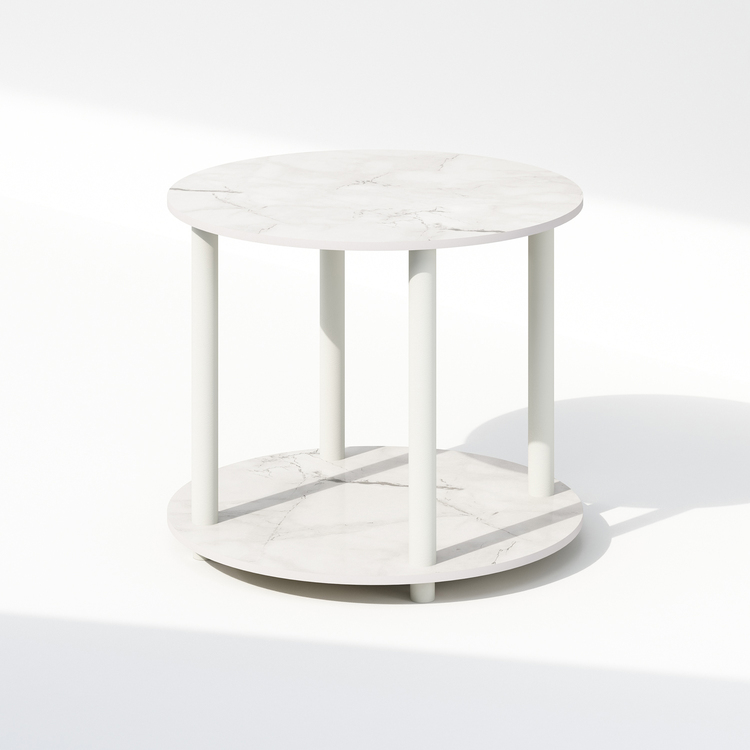 • Furinno Turn-N-Tube Simple Design 2-Tier Round Wooden Side End Table, Marble White image - 1