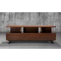 • 70? Mid-Century Modern TV Stand Media Console for Flat Screen and Audio Video Installations with a cognac finish over Brazilian cherry veneers and solid black cherry wood legs image - 1