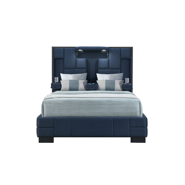 • Global Furniture USA Oscar Navy Blue Bed with Wireless Charger image - 1