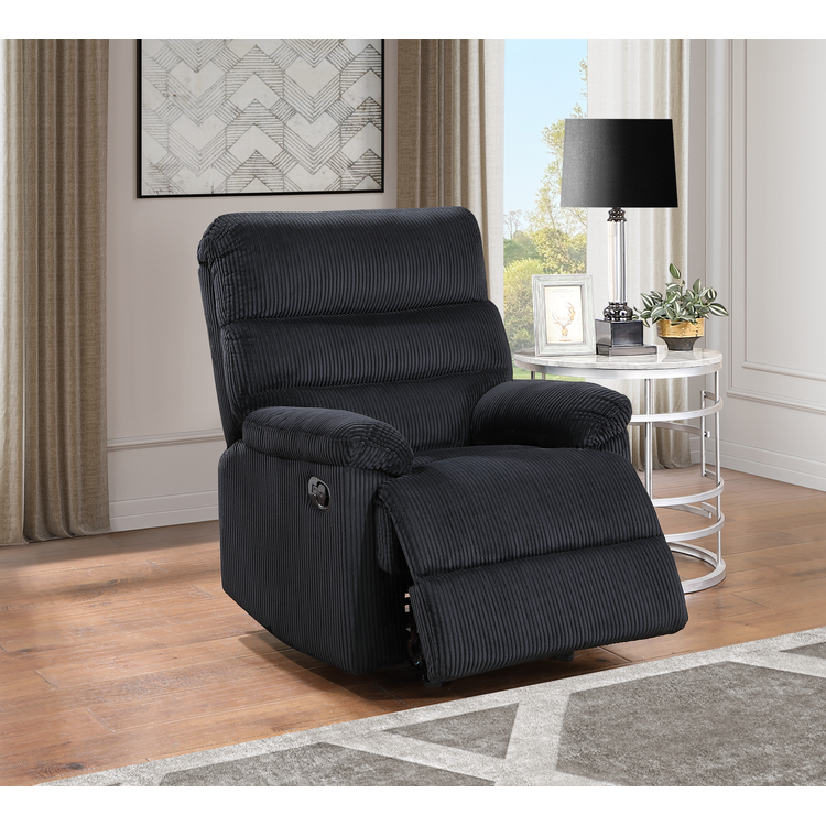 • Glory Furniture Lucie Velvet Corded Fabric Glider Recliner Sofa , Black image - 1