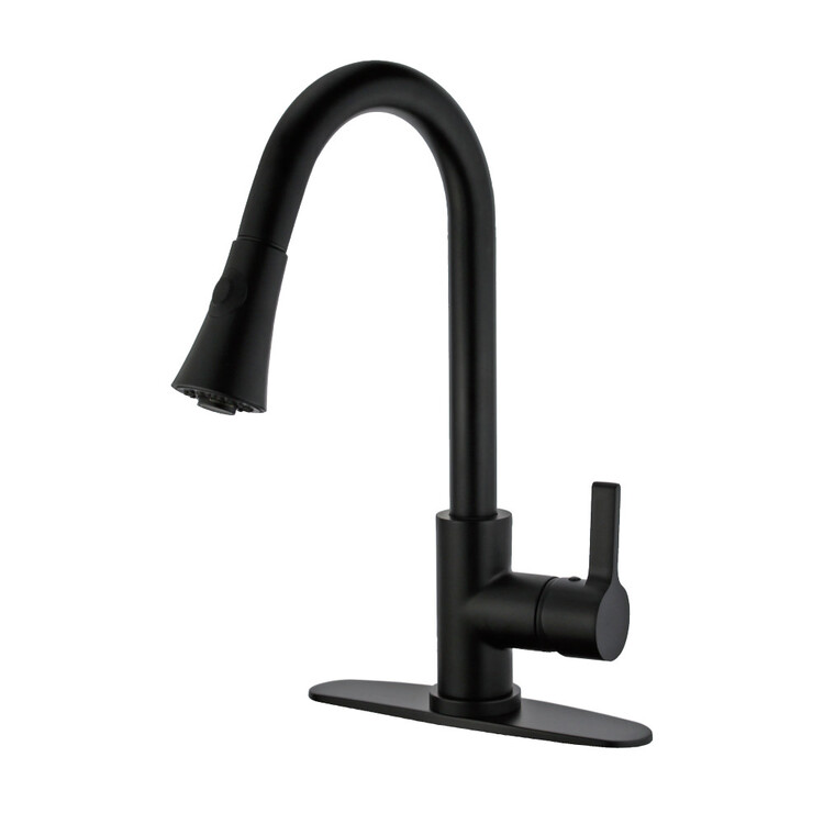 • Matte Black Single - Handle Pull - Down Kitchen Faucet w/Touchless Tap and Spray Function - Kingston Brass image - 1