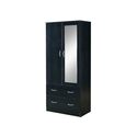 Hodedah 2-Door Armoire with 2-Drawers and Clothing Rod plus Mirror in Black