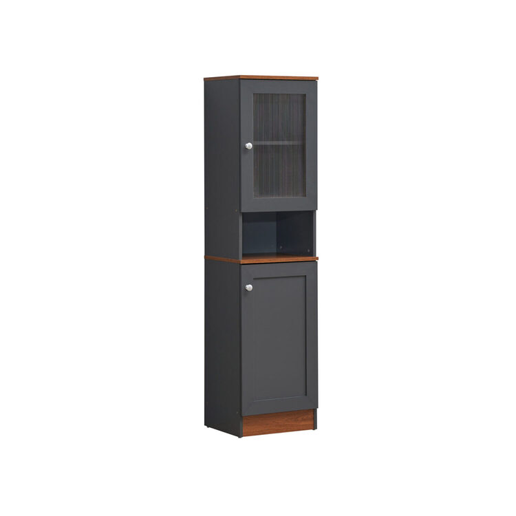 • Hodedah 63" Tall Slim Open Shelf Plus Top and Bottom Enclosed Storage Kitchen Pantry in Grey-Oak image - 1