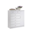 Hodedah 7 Drawer Jumbo Dresser Chest, Five Large Drawers, Two Smaller Drawers with Two Lock, Hanging Rod, and Three Shelves, White