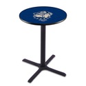 • Georgetown Pub Table, 42 Round Stainless Steel Top, Wooden Leg Stool Combo - Holland Bar Stool Co image - 1