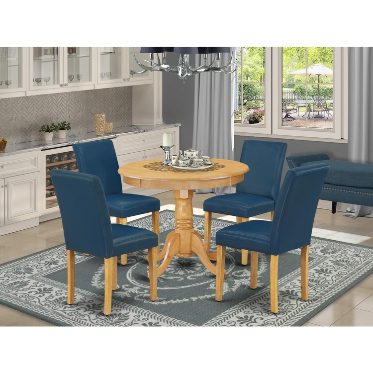 • ANAB5-OAK-55 5Pc Round 36" Table And 4 Parson Chair With Oak Leg And Pu Leather Color Oasis image - 1