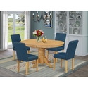 AVAB5-OAK-55 5Pc Oval 42/60" Table With 18 In Self Storing Butterfly Leaf And 4 Parson Chair With Oak Leg And Pu Leather Color Oasis