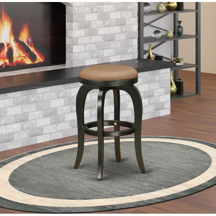 • Home Imports Emporium BFS030-112 Bedford Counter Height Barstool - Round Shape Brown Roast PU Leather Upholstered Pub Height Backless Chairs, 30 Inch Height, Black image - 1
