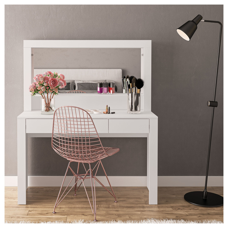• Boahaus Calypso Makeup Vanity, White, 3 Drawers, Wide mirror image - 1