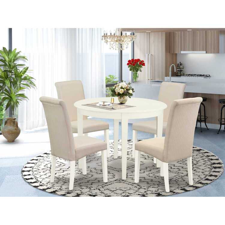 • Home Imports Emporium BOBA5-WHI-01 5 Piece Modern Dining Table Set Includes a Round Kitchen Table and 4 Cream Linen Fabric Parsons Dining Chairs, 42x42 Inch, Linen White image - 1