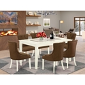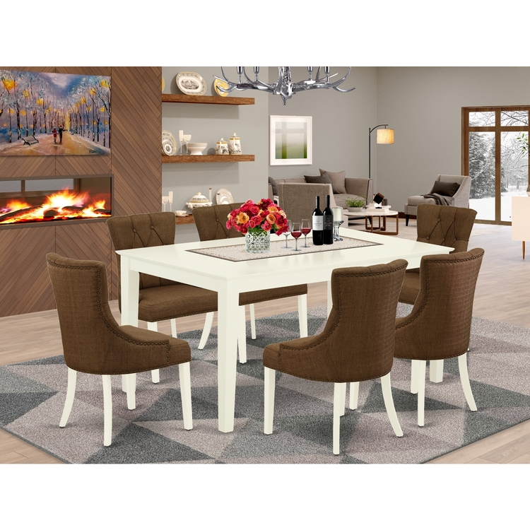 CAFR7-LWH-18 7Pc Dinette Set Includes a Rectangular Kitchen Table and Six Parson Chairs with Dark Coffee Fabric, Linen White Finish