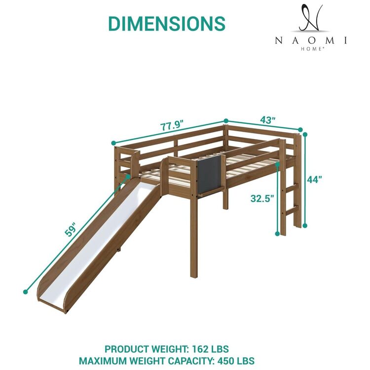 • Cindy Twin Size Loft Bed with Slide and Ladder, Kids Low Loft Bed by image - 1
