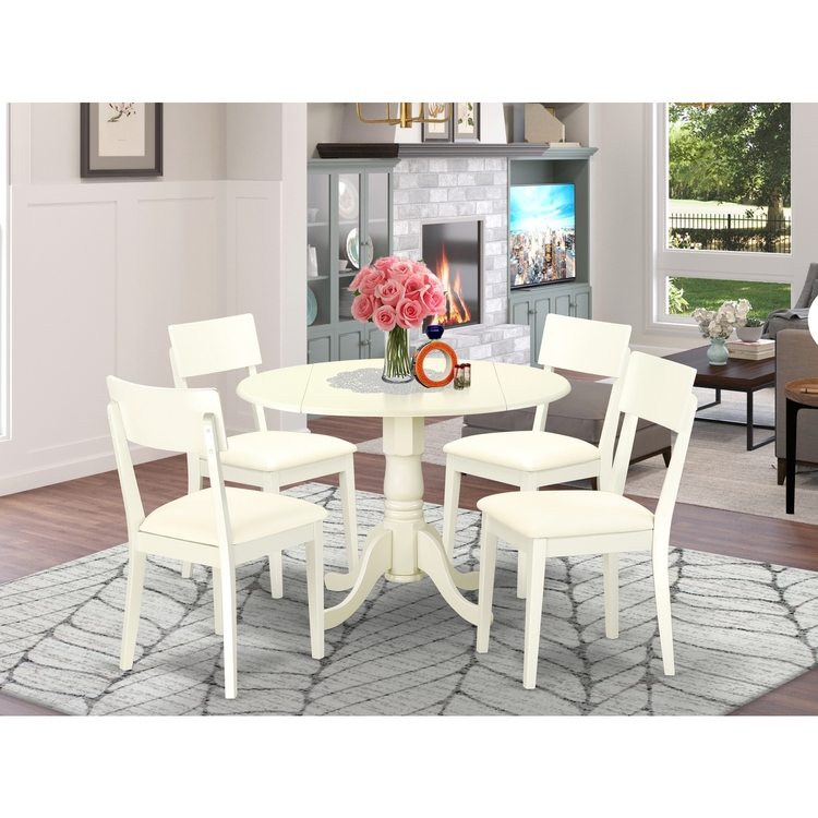 DLAD5-WHI-LC 5 PC Dublin kitchen table set-Dining table and 4 Faux Leather Kitchen chairs