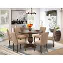 • East West Furniture I3AB7-747 7 Piece Modern Dining Table Set Consist of a Round Wooden Table with Pedestal and 6 Light Sable Linen Fabric Parson Chairs, 48x48 Inch, Distressed Jacobean image - 1