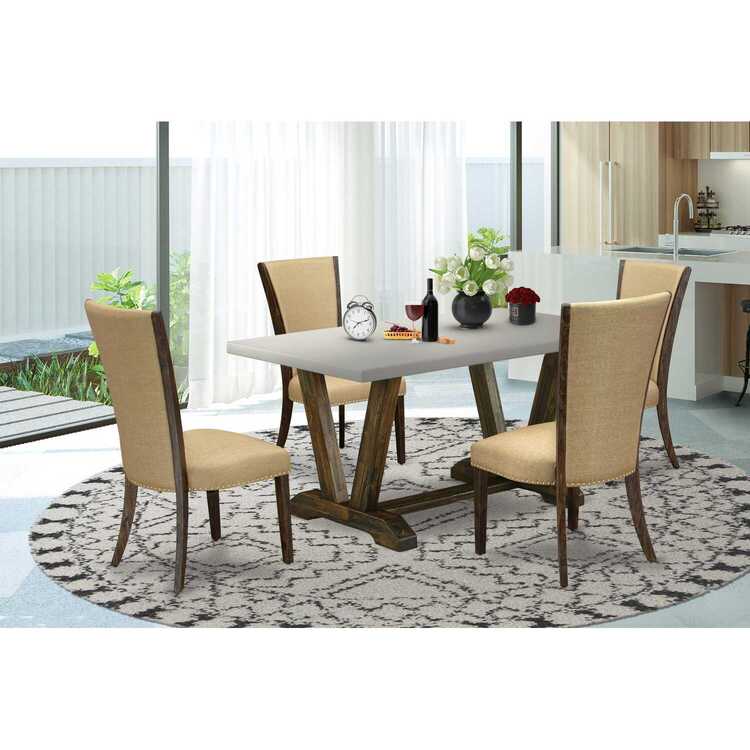 • East West Furniture V796VE703-5 5 Piece Dining Table Set for 4 Includes a Rectangle Kitchen Table with V-Legs and 4 Brown Linen Fabric Upholstered Chairs, 36x60 Inch, Multi-Color image - 1