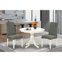 • HBDR3-LWH-07 3 Piece Dining Table Set - Linen White Small Kitchen Table and 2 Grey Linen Fabric Chairs for Dining Room with High Back - Linen White Finish image - 1