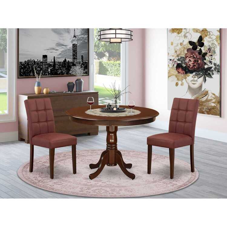 HLAS3-MAH-26 3 Piece Dining Table Set Consist of a Round Kitchen Table with Pedestal and 2 Chairs, Mahogany