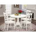 • Home Imports Emporium HLBO5-LWH-W 5 Piece Dinette Set for 4 Includes a Round Dining Room Table with Pedestal and 4 Kitchen Dining Chairs, 42x42 Inch, Linen White image - 1