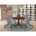 • HLDA5-MAH-27 5 Piece Kitchen Table Set Consists of a Round Dining Table with Pedestal and 4 Upholstered Chairs, Mahogany image - 1