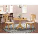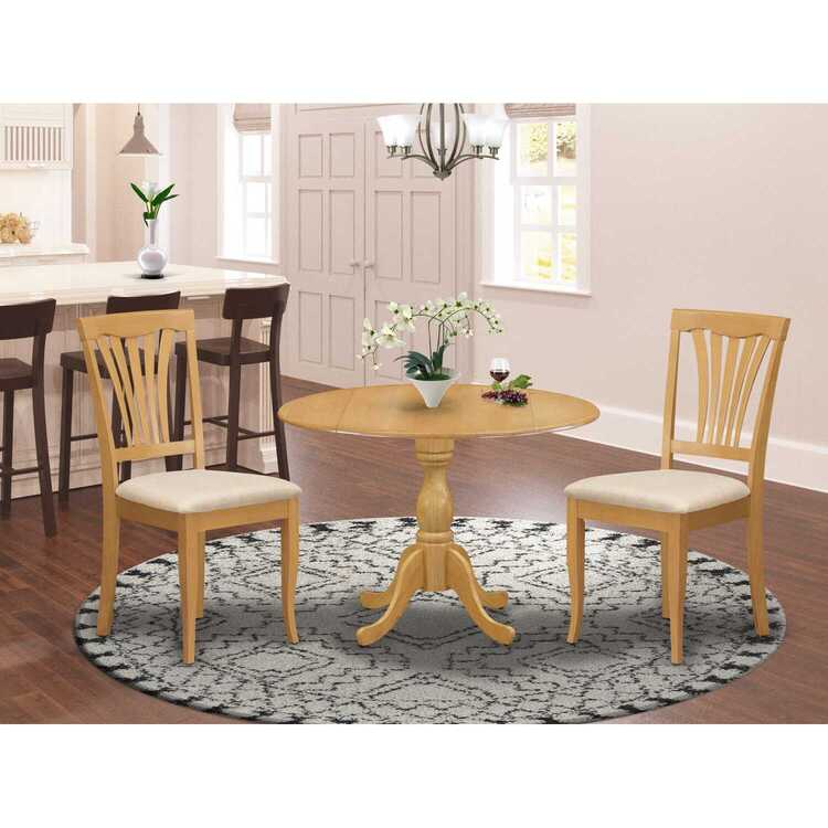 • Home Imports Emporium Modern Oak Dining Table Set with Linen Chairs Slatted Back image - 1