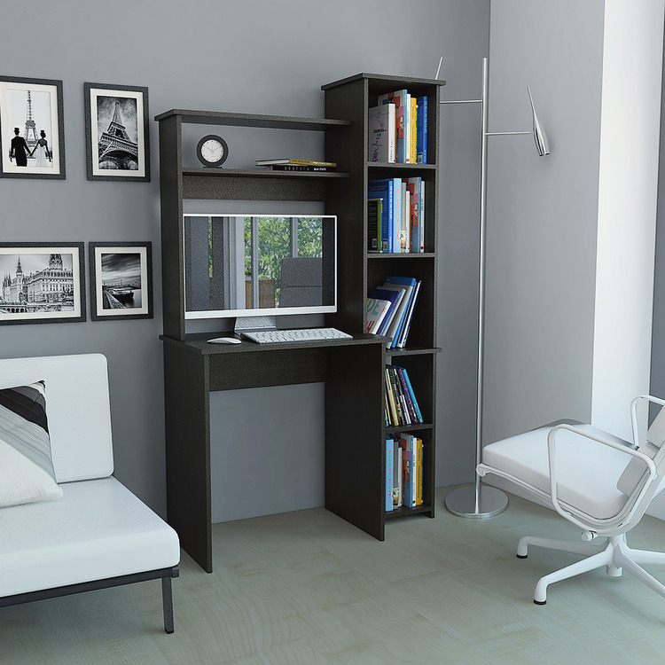 • TUHOME Versalles Collection Free Standing Home Office Computer Desk, Study Writting Desk W/ 2 Top Shelves and Attached Bookcase with 5 Shelves. Espresso Finish for Small Spaces image - 1
