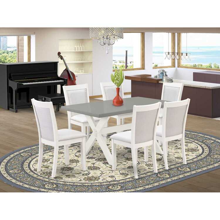 • X096MZ001-7 7 Piece Kitchen Table Set Consist of a Rectangle Dining Table with X-Legs and 6 Cream Linen Fabric Parson Dining Room Chairs, 36x60 Inch, Multi-Color image - 1