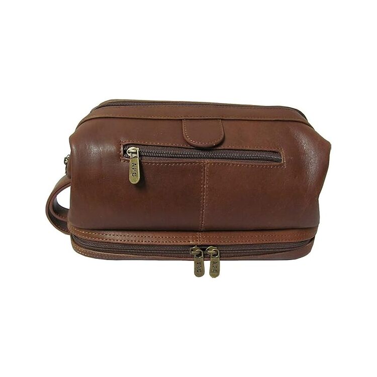 - Amerileather Leather Toiletry Bag: This luxurious toiletry bag is made from top-grain cowhide leather and features a water-proof lining. It has a spacious main compartment, an interior zippered compartment, and two interior net pouches. It also has an outer zippered compartment and a bottom zippered compartment with TSA-approved travel bottles and a toothbrush holder.