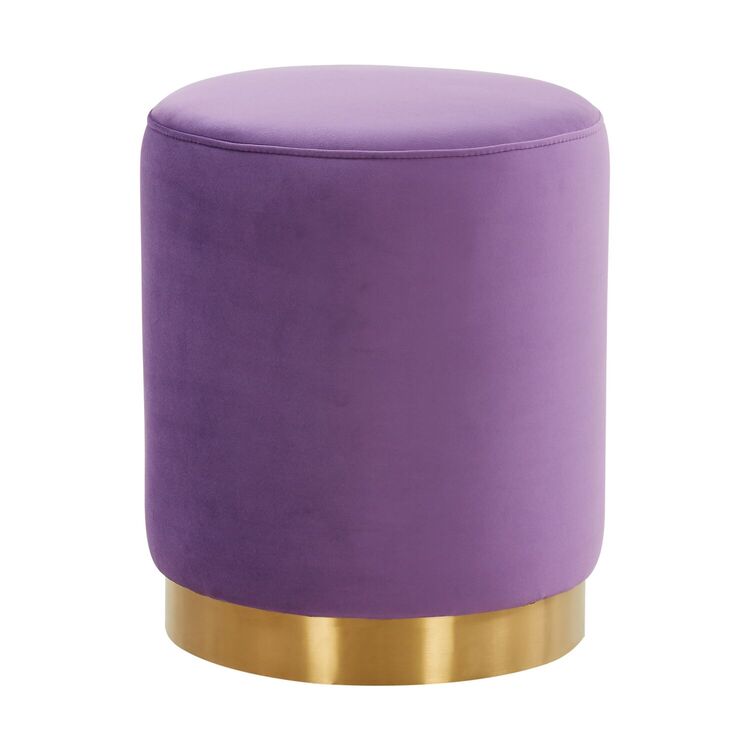 • Round Velvet Ottoman - 16" Gold Base Footstool - Modern Accent Furniture image - 1