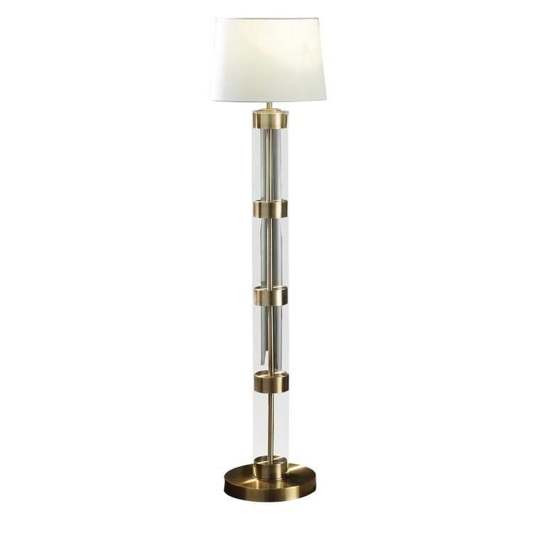• HomeStock 18x18x59.5" Antique Brass Metal and Glass Floor Lamp with White Empire Shade, Clear Detail Bands, and On-Off Socket Switch image - 1