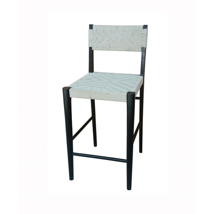 • HomeStock 19.3 x 21 x 42.3 Inch Black and Gray Barstool Chair Set of 2 with Cotton Woven Seat Back and Wooden Frame No Assembly Required image - 1