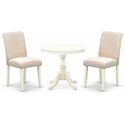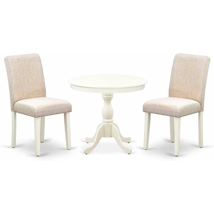 • HomeStock 3 Piece Dining Room Set Contains a Round Dining Table with Pedestal and 2 Light Beige Linen Fabric Upholstered Chairs, 36x36 Inch,Linen White image - 1
