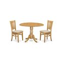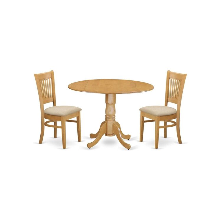 • HomeStock 3 Piece Kitchen Table & Chairs Set Includes a Round Dining Room Table with Dropleaf and 2 Linen Fabric Upholstered Chairs, 22x22 Inch in Oak image - 1