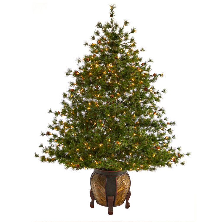 • HomeStock 5.5Ft Mountain Pine Artificial Christmas Tree with 250 Clear Lights, 669 Bendable Branches, and Pine Cones in Decorative Planter Full and Lifelike Tree for Traditional Christmas Decor image - 1