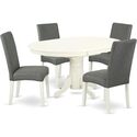 • HomeStock 5 Piece Dinette Set for 4 Includes an Oval Dining Table with Leaf and 4 Gray Linen Fabric Parson Dining Room Chairs, 42x60 Inch,Linen White image - 1