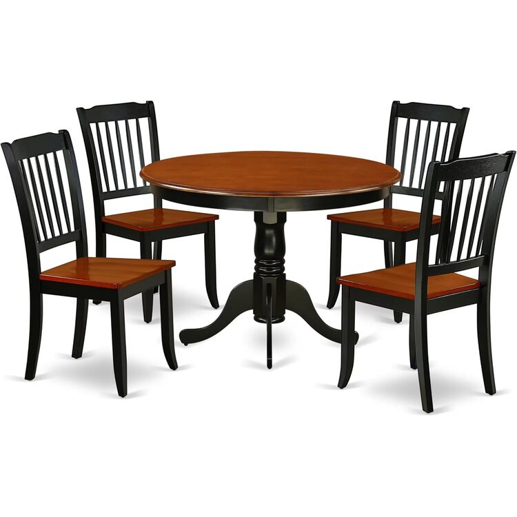 • HomeStock 5 Piece Kitchen Table & Chairs Set Includes a Round Dining Room Table with Pedestal and 4 Dining Chairs, 42x42 Inch,Black & Cherry image - 1