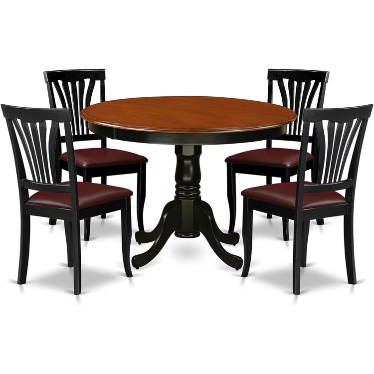 • HomeStock 5 Piece Kitchen Table Set for 4 Includes a Round Dining Table with Pedestal and 4 Dining Room Chairs, 42x42 Inch,Black & Cherry image - 1