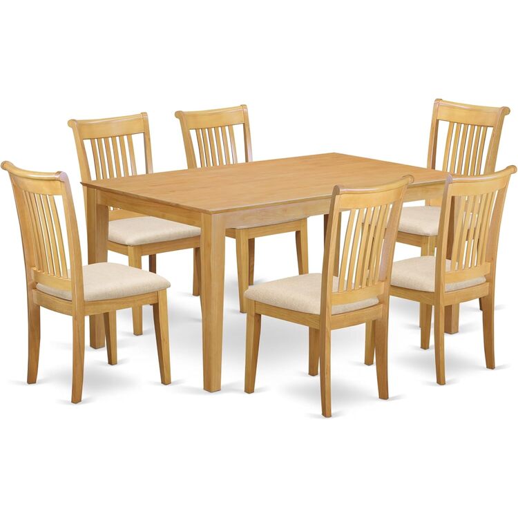 • HomeStock 7 Piece Dining Set Consist of A Rectangle Dinner Table and 6 Linen Fabric Kitchen Dining Chairs, 36X60 Inch, Oak image - 1
