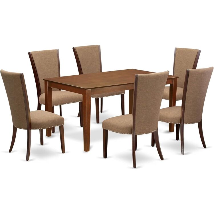 • HomeStock 7 Piece Dining Table Set Consist of a Rectangle Dining Room Table and 6 Light Sable Linen Fabric Upholstered Chairs, 36x60 Inch, Mahogany image - 1
