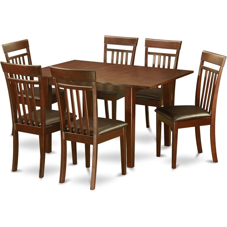 • 7 Piece Dining Set - Rectangle Table with Leaf & 6 Chairs - Mahogany Finish image - 1
