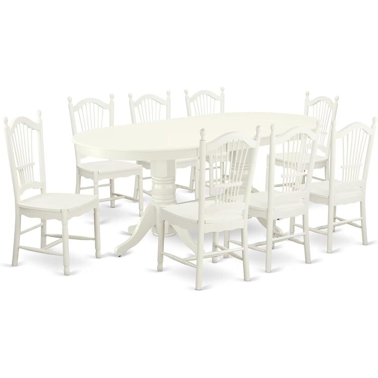 • 9-Piece Dining Set - Oval Table with Leaf & 8 Chairs - Linen White image - 1