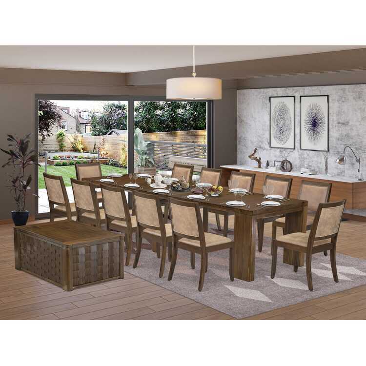 • HomeStock African Artistry 14 Pieces Extendable Dining Set Includes 1 Rectangle Kitchen Table, 1 Coffee Table and 12 Stackable Dining Chairs, Antique Walnut image - 1