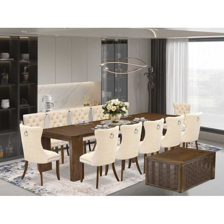 • HomeStock Antique 14 Pieces Extendable Dining Set Includes a Rectangle Kitchen Table, 1 Coffee Table and 12 Dining Chairs, Antique Walnut image - 1