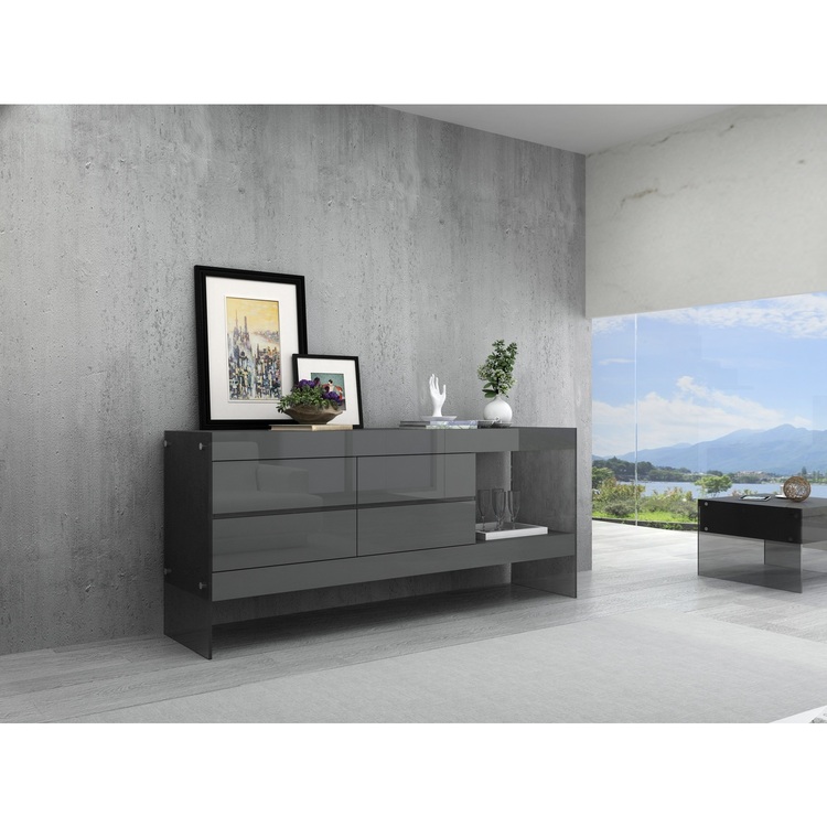 • Homestock Antique Accents Buffet In Grey High Gloss image - 1